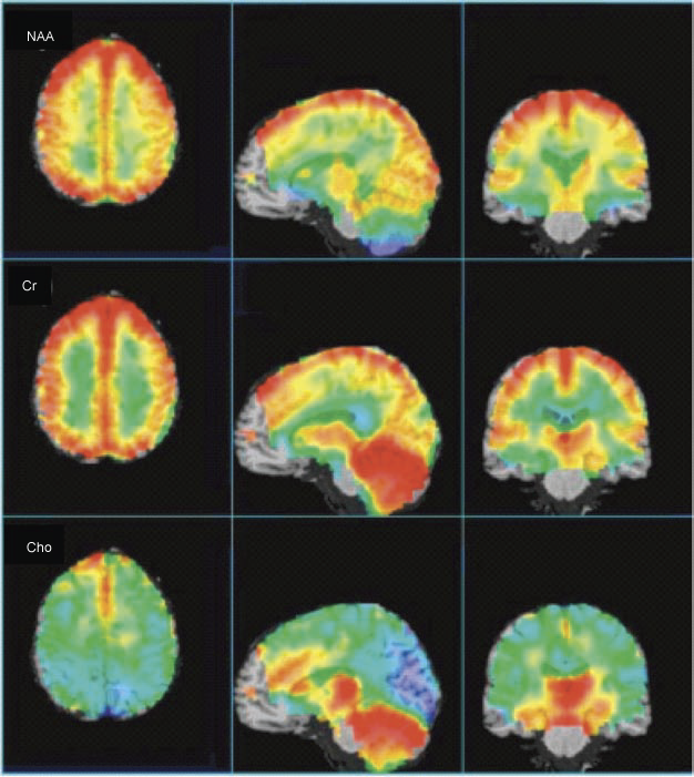 metabolic images of Cho, Cr, and NAA presented in axial,